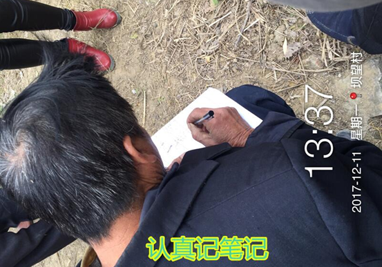 当天,虽然天气寒冷,但培训现场气氛热烈。来自麻尾镇农业服务中心的农技人员莫得霞,从整地、催芽、切块、栽种、施肥、病害预防等方面,详细讲解了冬季马铃薯种植及田间管理的各项技术要领,并进行现场示范和指导。参训的贫困户们认真聆听,仔细观察,有时心神领会地点点头,有时向农技人员详细询问,不少贫困户用手机拍下了重要细节的图片,甚至有几位有文化的贫困户还认真地做了笔记。么王组的贫困户许永香高兴的说:“没想到种马铃薯还有这么多学问,今天真的长了见识了!”