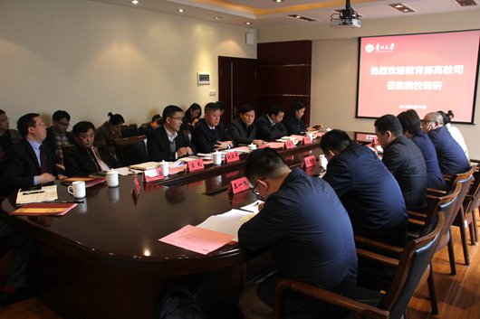 近日,教育部高教司综合处处长武世兴、副处长江河、综合处王一鸣等一行来贵州大学调研“中西部高等教育振兴计划”实施情况。调研座谈会在北校区行政楼第二会议室召开,省教育厅副厅长王红红、高教处处长邸姜滔,贵州大学常务副校长王红蕾以及校相关职能部门负责人参加会议。