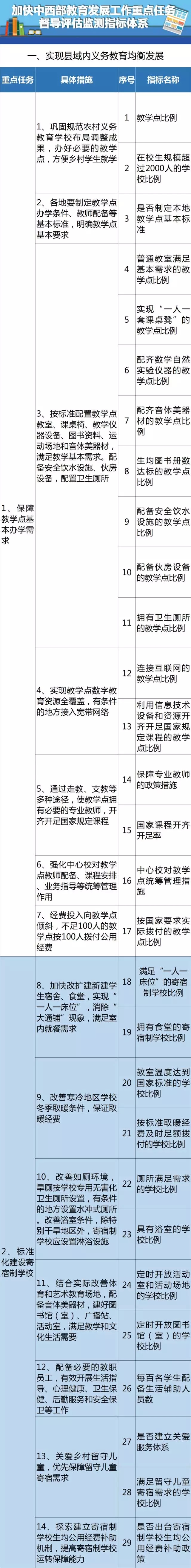 加快中西部教育发展工作重点任务督导评估监测指标体系的具体措施有哪些?各项指标都是什么?详细信息来了↓↓↓