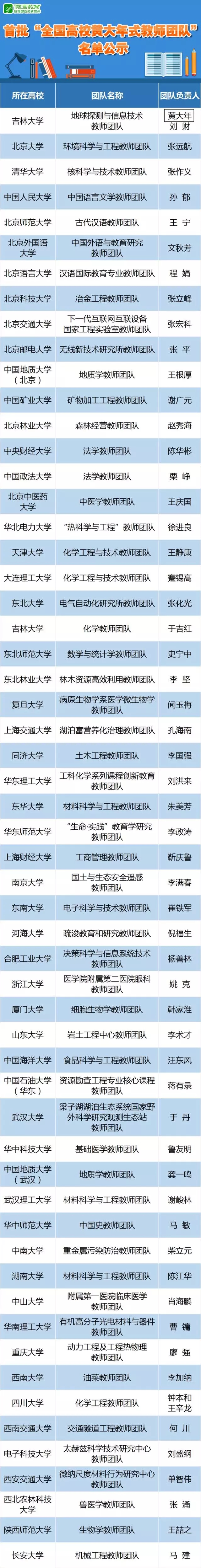 为深入贯彻落实习近平总书记对黄大年同志先进事迹重要指示精神,引导广大教师持续向黄大年同志学习,教育部印发《关于开展全国高校黄大年式教师团队创建活动的通知》。近日,教育部公示首批 “全国高校黄大年式教师团队”名单。